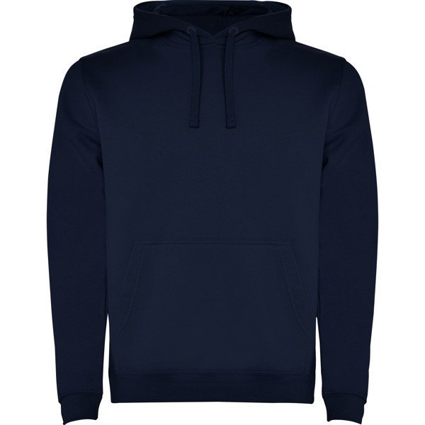 Sweat-shirt capuche avec poche kangourou et cordon de serrage. Poignets et ceinture avec élasthanne en côte 1x1.
